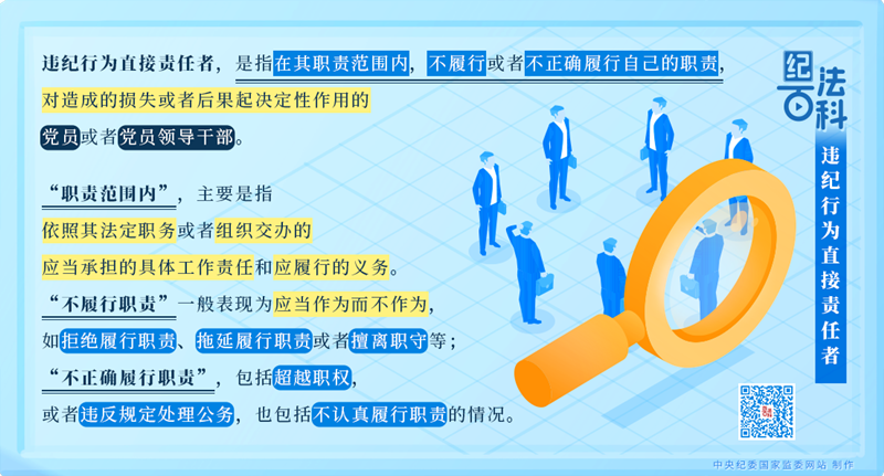 違紀行為直接責任者,是指在其職責范圍內,不履行或者不正確履行自己的職責,對造成的損失或者后果起決定性作用的黨員或者黨員領導干部。