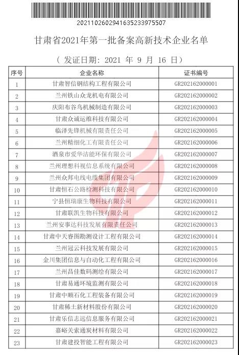 中標甘肅省引洮供水二期配套城鄉(xiāng)供水信息化專項工程方案、招標設計及施工圖設計項目;平涼市崇信縣棗林溝水庫工程;萬州區(qū)魚背山水庫大壩安全評估報告編制;協合拉引水樞紐、秋格爾引水樞紐、英爾引水樞紐安全評價項目。中標蘭州中川機場三期擴建供油工程項目機坪航站區(qū)工程勘察。中標省政府為民實事保障性租賃住房項目監(jiān)理。根據《高新技術企業(yè)認定管理辦法》和《高新技術企業(yè)認定管理工作指引》有關規(guī)定,全國高新技術企業(yè)認定管理工作領導小組辦公室于10月26日正式公布了甘肅省2021年第一批備案的294家高新技術企業(yè)名單,建設監(jiān)理公司榜上有名,被評定為“高新技術企業(yè)”。