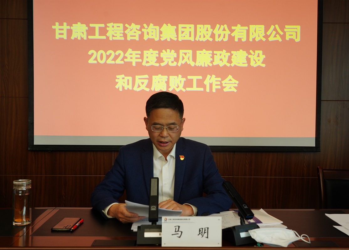 3月28日,甘肅工程咨詢集團召開2022年黨風(fēng)廉政建設(shè)和反腐敗工作會議。黨委副書記、總經(jīng)理馬明出席會議并講話,黨委委員、監(jiān)事會主席焦軍毅主持會議,集團公司領(lǐng)導(dǎo)班子成員及相關(guān)部門負責(zé)人在主會場參會,各子公司黨委書記、董事長(執(zhí)行董事)、總經(jīng)理、黨委副書記、紀委書記,相關(guān)部門負責(zé)人在分會場參加。