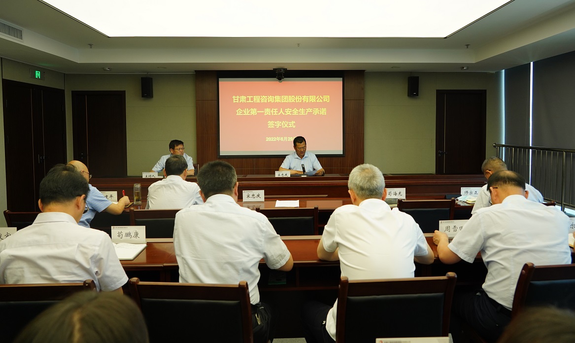 會上,集中觀看了《生命重于泰山--學習習近平總書記關于安全生產重要論述》專題片;開展了集團公司“第一責任人”安全生產承諾書簽約活動,黨委書記、董事長宋忠慶宣讀“甘肅工程咨詢集團股份有限公司第一責任人安全生產承諾書”,并與黨委副書記、總經理馬明共同在“第一責任人安全生產承諾書”上簽字。