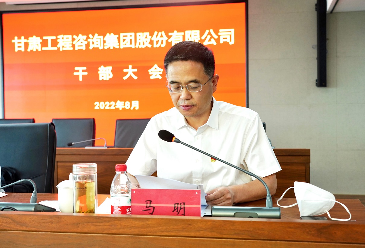 8月2日,甘肅工程咨詢集團召開干部大會,宣布省委關于集團黨委主要負責人任免決定:馬明同志任甘肅工程咨詢集團股份有限公司黨委書記,宋忠慶同志不再擔任甘肅工程咨詢集團股份有限公司黨委書記職務。