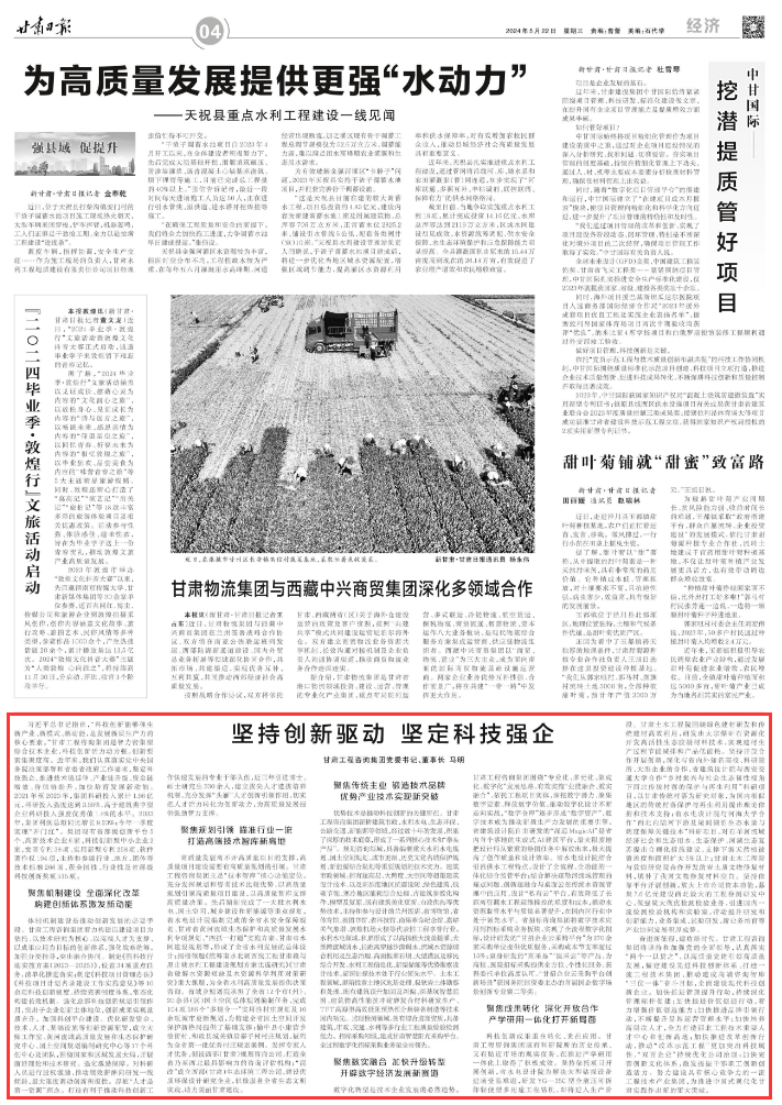 科技創(chuàng)新成果重在轉(zhuǎn)化、貴在應(yīng)用。甘肅工程咨詢集團(tuán)既有科研院所的歷史傳承,又有貼近市場(chǎng)的現(xiàn)實(shí)優(yōu)勢(shì),在推進(jìn)產(chǎn)學(xué)研用一體化上取得了積極成效。堅(jiān)持依托項(xiàng)目開展創(chuàng)新,省水電設(shè)計(jì)院為解決大型鉆探設(shè)備進(jìn)場(chǎng)受限難題,研發(fā)YG—35C型全液壓可拆卸輕便型多用途工程鉆機(jī),即將進(jìn)入生產(chǎn)階段。甘肅土木工程院圍繞綠色建材研發(fā)和傳統(tǒng)建材高效利用,研發(fā)出大宗煤矸石資源化開發(fā)高活性生態(tài)膠凝材料技術(shù),實(shí)現(xiàn)建材生產(chǎn)過程節(jié)能減排和產(chǎn)品低能耗。堅(jiān)持開放合作開展創(chuàng)新,深化與省內(nèi)外知名高校、科研院所、大型企業(yè)的合作,省建筑設(shè)計(jì)院與西安交通大學(xué)合作“鄉(xiāng)村振興與社會(huì)生態(tài)韌性視角下西北傳統(tǒng)村落的保護(hù)與再生利用”科研項(xiàng)目,以甘肅傳統(tǒng)村落為研究對(duì)象,為國(guó)內(nèi)相似地區(qū)的傳統(tǒng)村落保護(hù)與再生利用提出理論依據(jù)和技術(shù)支持;省水電設(shè)計(jì)院與河海大學(xué)合作“西北內(nèi)陸河下游及尾閭湖泊生態(tài)水量與調(diào)度保障關(guān)鍵技術(shù)”科研項(xiàng)目,對(duì)石羊河流域經(jīng)濟(jì)社會(huì)和生態(tài)用水、生態(tài)保護(hù)、河湖生態(tài)復(fù)蘇提出合理化措施建議,支撐下游天然植被覆蓋度和面積擴(kuò)大5%以上;甘肅土木工程院與敦煌研究院合作開發(fā)的巖土質(zhì)文物修復(fù)材料,填補(bǔ)了我國(guó)文物修復(fù)材料空白。堅(jiān)持依靠平臺(tái)開展創(chuàng)新,放大上市公司資本功能,募集7.6億元建設(shè)西北最大的工程檢測(cè)研發(fā)中心,做強(qiáng)做大做優(yōu)檢測(cè)檢驗(yàn)業(yè)務(wù),引進(jìn)國(guó)內(nèi)一流檢測(cè)檢驗(yàn)機(jī)構(gòu)和實(shí)驗(yàn)室,帶動(dòng)提升研發(fā)和創(chuàng)新能力,業(yè)務(wù)集成、試驗(yàn)研發(fā)、新業(yè)務(wù)培育等產(chǎn)業(yè)協(xié)同發(fā)展積厚成勢(shì)。