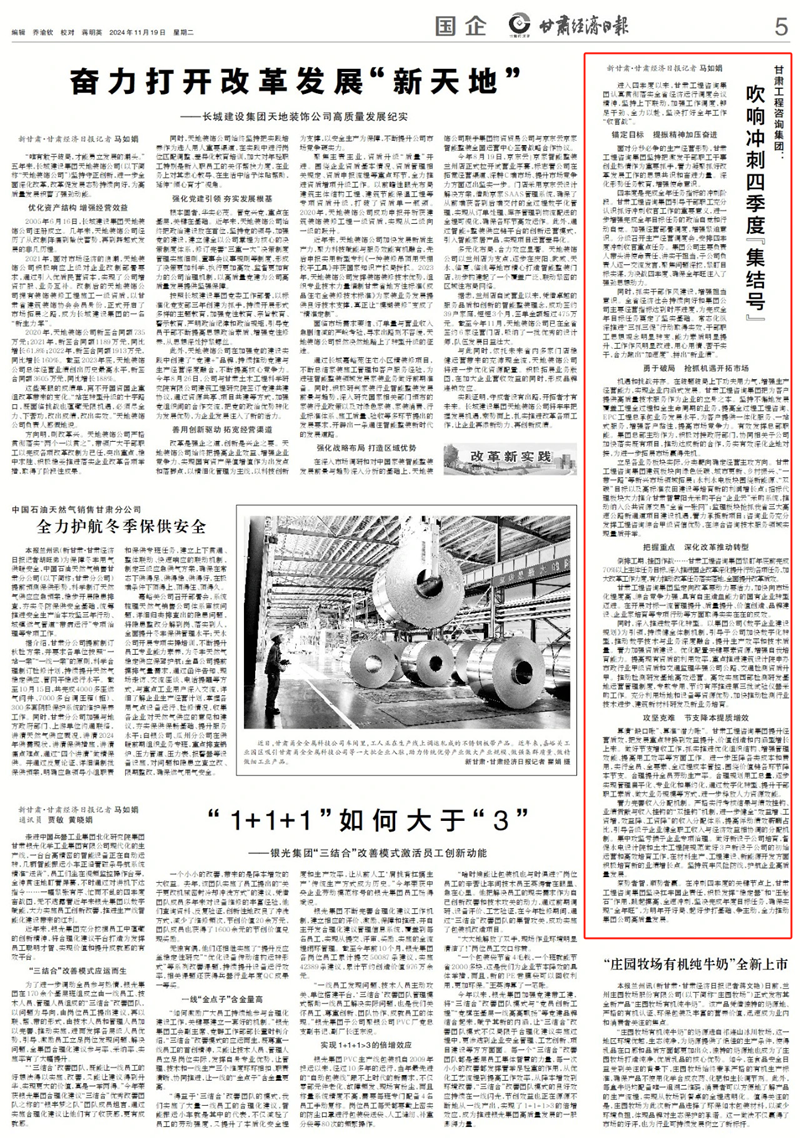 察勢者智,順勢者贏。在沖刺四季度的關(guān)鍵節(jié)點上,甘肅工程咨詢集團堅決扛牢國企責(zé)任,積極發(fā)揮“穩(wěn)定器”和“壓艙石”作用,跳起摸高、全速沖刺,堅決完成年度目標(biāo)任務(wù),確保實現(xiàn)“全年旺”,為明年開好局、起好步打基礎(chǔ)、爭主動,全力推動集團公司高質(zhì)量發(fā)展。