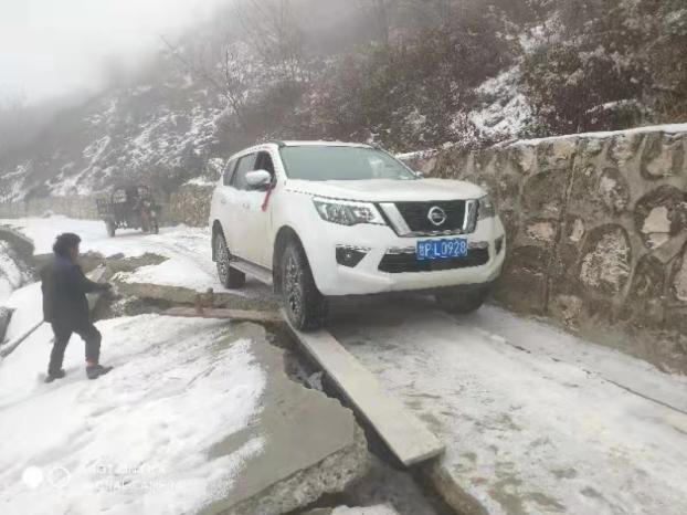 很多在隱患點上的行政村分布在舟曲縣周邊的大山高處,又逢舟曲剛下完大雪,山路崎嶇,道路積雪結冰,即使在車上套上防滑鏈還是無法到達一些村落。面對重重困難,工程師們沒有退縮,當積雪太深或結冰地路面太滑,車輛完全無法通行時,他們或推車前行,或頂風冒雪,深一腳淺一腳地步行好幾公里,走到開展工作的村子里去。