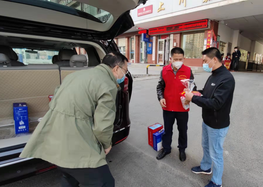 每到一個社區(qū)志愿服務(wù)點,陳啟和都詳細(xì)詢問了志愿者工作開展情況及用餐保障情況,并為志愿者送上保溫杯、食品和水果。來到萊茵小鎮(zhèn)小區(qū)時,正趕上上午全員核酸工作結(jié)束。一身“清涼”打扮的王賢亮,在捂得嚴(yán)嚴(yán)實實的人群中顯得格外亮眼。因為工作時還要套上防護(hù)服,即使天氣冷,他也只能身著單衣。透過口罩,依然能感受到他陽光燦爛的笑容,和在工作崗位上做技術(shù)質(zhì)量服務(wù)、工會工作時一個樣兒。辦公室的曹陽在封控小區(qū)參與志愿服務(wù),承擔(dān)著核酸檢測、為封管居民配送生活必需品和數(shù)據(jù)統(tǒng)計上報等工作,每天一棟樓一棟樓的登記,挨家挨戶的排查,工作更繁雜也更辛苦。按照社區(qū)防控要求,雖然不能把慰問品親自交到她的手上,慰問組也通過電話送去了慰問和關(guān)懷,并一再叮囑她,要做好自我防護(hù)。