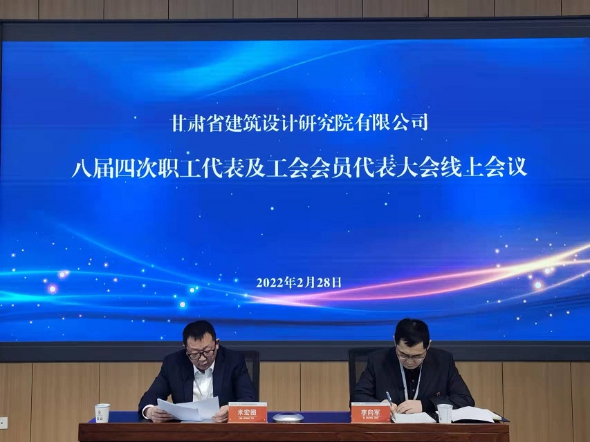 2月28日,甘肅省建筑設計研究院有限公司以視頻會議形式召開八屆四次職工代表大會。董事長米宏圖作了題為《深化改革創新 聚力提質增效 以嶄新業績譜寫高質量發展新篇章》的工作報告。建筑設計院領導班子成員及職工代表、工會會員代表147人分別通過PC端和移動端參加會議,17名特邀代表列席會議。會議由黨委書記李向軍主持。