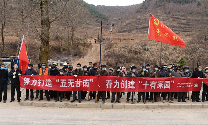 2022年4月,根據(jù)王旗鎮(zhèn)安排,駐村幫扶工作隊員會同其他鎮(zhèn)村干部組織群眾數(shù)十人,在洮河西岸磨溝段開展了以“黨旗高擎、黨徽常耀、綠色出行、保護環(huán)境”為主題的義務(wù)植樹活動,共栽下4000余棵松樹苗,掀起了植樹造林的熱潮。