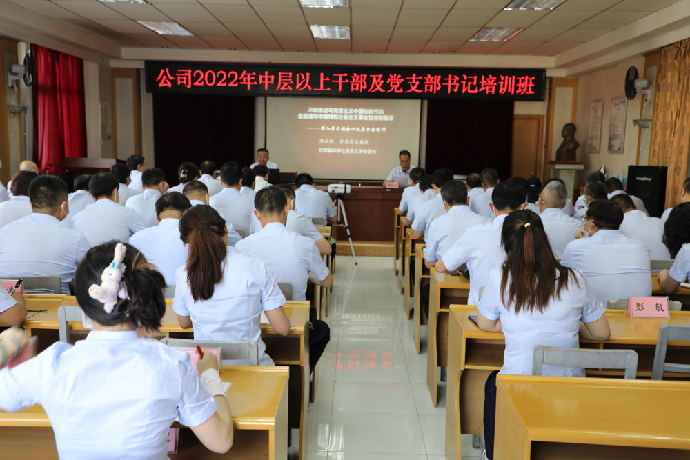 本次培訓邀請省委黨校陳永勝教授作了題為《不斷推進馬克思主義中國化時代化 全面譜寫中國特色社會主義事業甘肅新篇章》的黨的十九屆六中全會精神宣講暨意識形態形勢任務教育專題培訓講座。講座結合當前形勢下如何做好企業意識形態工作,從馬克思主義為什么要中國化時代化、百年黨史馬克思主義中國化時代化的歷程、馬克思主義中國化時代化新的飛躍、以習近平新時代中國特色社會主義思想為指導全面譜寫社會主義現代化建設甘肅新篇章等四個方面作了講授,講座內容兼具政治引領性、工作針對性、實踐指導性,旁征博引、精彩紛呈,贏得了參訓學員的陣陣掌聲。