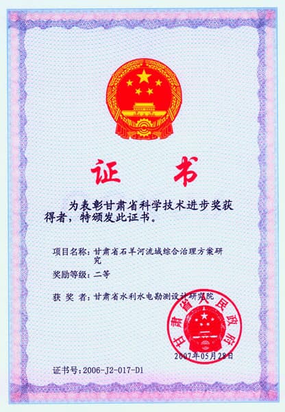 甘肅省科技進(jìn)步獎(jiǎng)